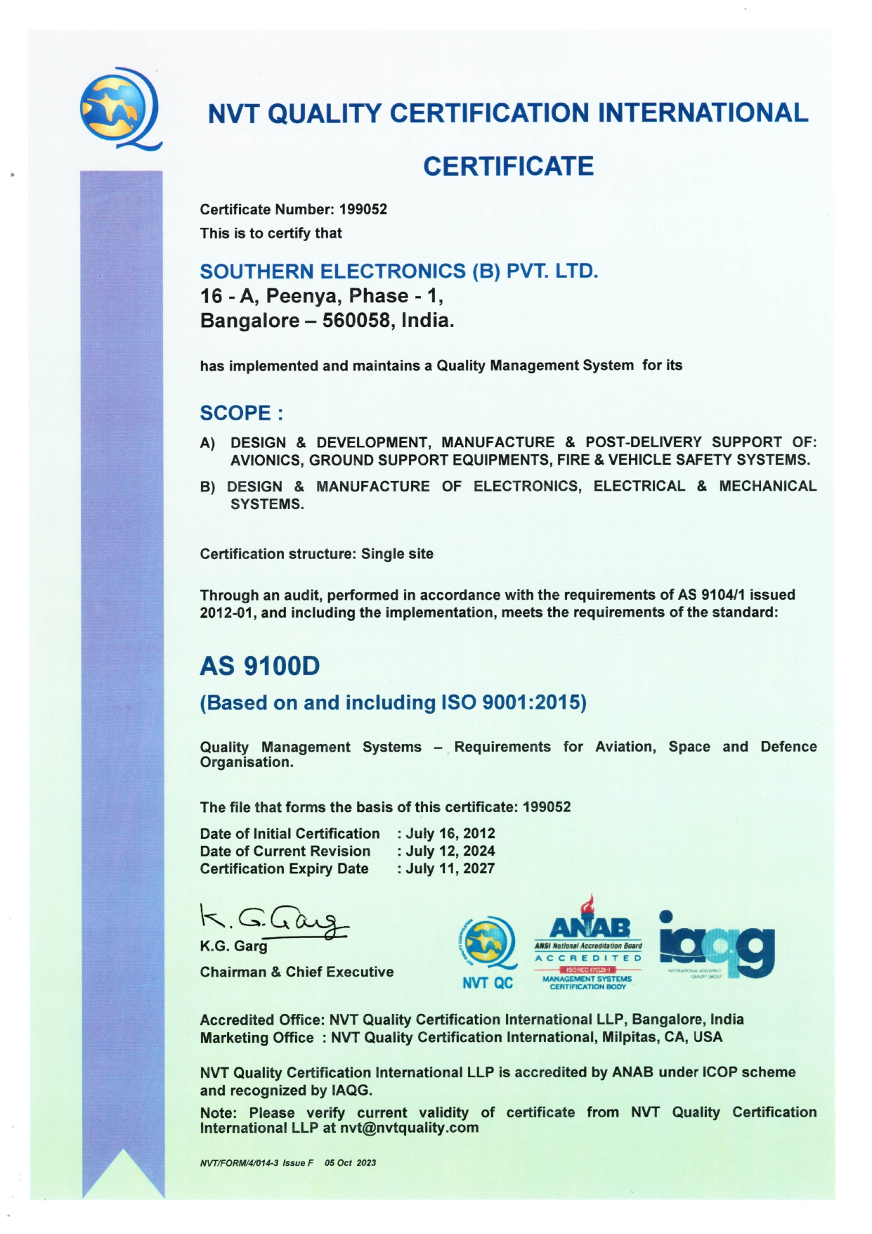 Seonics is committed to achieving customer satisfaction through design, development, manufacture and post-delivery activities of Avionics, Ground Support, Cable Harness, Fire Detection and Suppression, Safety Systems, Mechanical, Electrical and Electronics Systems for Aerospace, Defence, Industrial and Railway Applications and continual improvement in all activities through effective Quality Management System